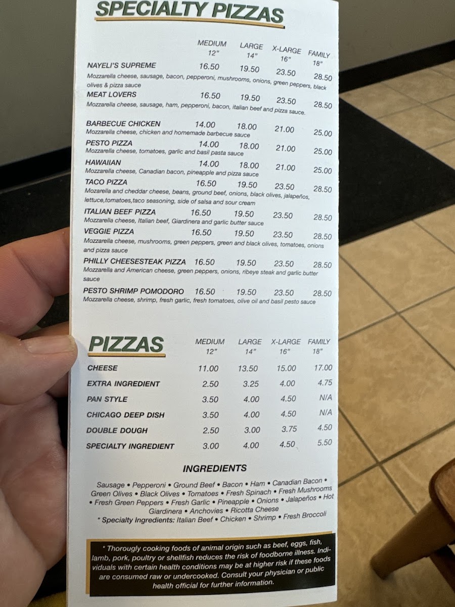 Welcome to Nayeli's Pizza & Restaurant, where deliciousness meets comfort in the heart of Walworth, WI. This inviting eatery offers a diverse menu that caters to every craving. Start with their southwestern egg rolls for a mouthwatering appetizer, then dive into their impressive pizza selection. As one satisfied customer noted, the daily specials—like the 1 topping large pizza—are not only affordable but also quick to prepare, ensuring a delightful dining experience.